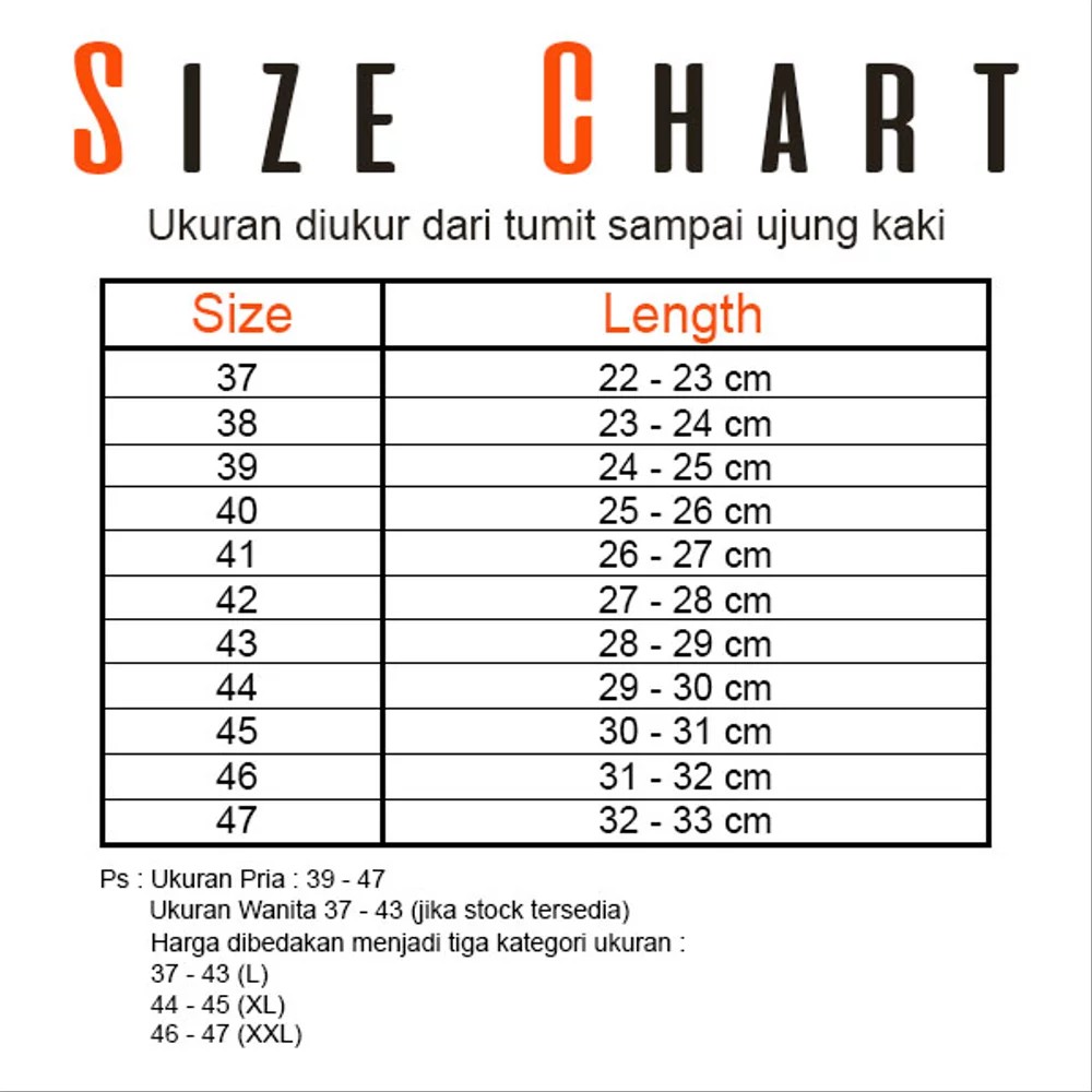Jika ukuran kakimu 23 cm, maka ukuran sepatumu 37 atau dalam ukuran uk berarti kamu . 5 standar ukuran sepatu indonesia (dalam ukuran centimeter) . 22.80, 23.10, 23.50, 23.80, 24.10, 24.50, 24.80, 25.10, 25.40, 25.70, 26.00, 26.70, 27.30, 27.90, 28.60, 29.20. Beserta daftar konversi ukuran sepatu antar negara seperti us, uk, eur,. Ambil penggaris dan ukur dari bagian belakang kertas ke titik terjauh untuk setiap kaki dan tulis pengukuran dalam milimeter. Ada 3 jenis pengukuran internasional yang paling sering digunakan khususnya di indonesia, yaitu eu, uk, dan us.
